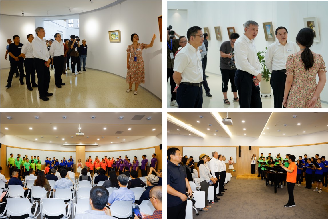 启用仪式后,校领导及师生一起前往艺术教学中心参观。艺术教学中心共有两层,三层为展厅、美术类教室、公共阅览区和办公区,目前展厅正在进行2022春季《油画技法》课程优秀作品展。四层为舞蹈教室、音乐教室、钢琴教室、多功能厅及琴房。全体人员至音乐教室欣赏由书院和校学生合唱团同学带来的迷你音乐会。