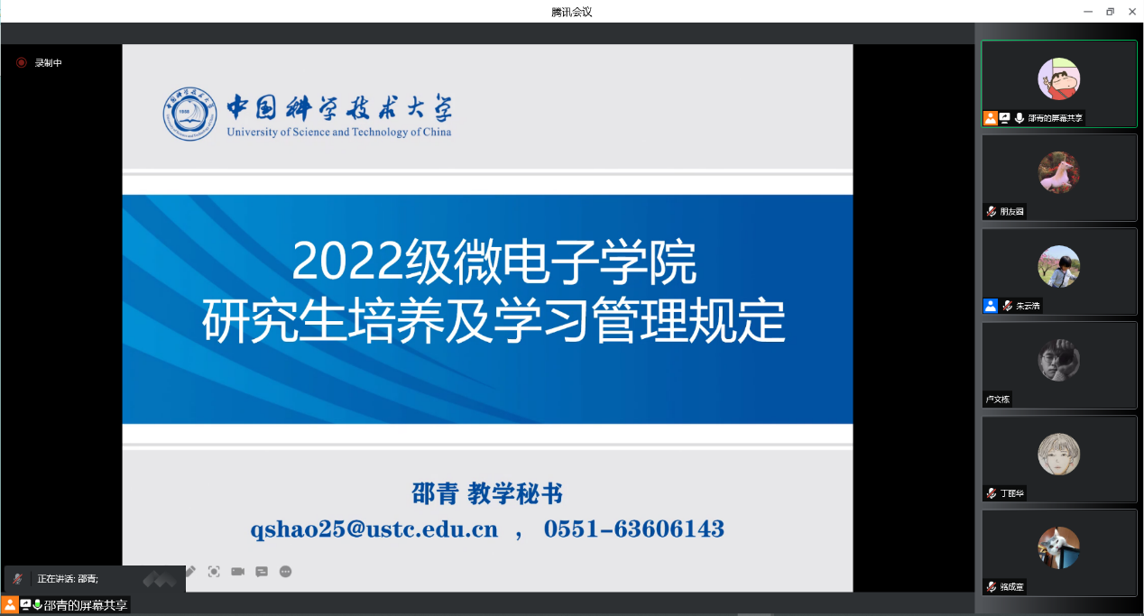 为切实做好微电子学院2022级研究生新生入学教育工作,帮助新生更好地融入学校的学习生活,微电子学院9月14日举行2022级研究生全体新生入学教育大会。根据属地疫情防控政策要求,新生入学教育采用线上方式进行。学院执行院长龙世兵、副院长程林、青年教师李鹏、教学秘书邵青、校图书馆丁丽华以及研究生全体新生共300余人参加,会议由学院党总支书记朱云浩主持。