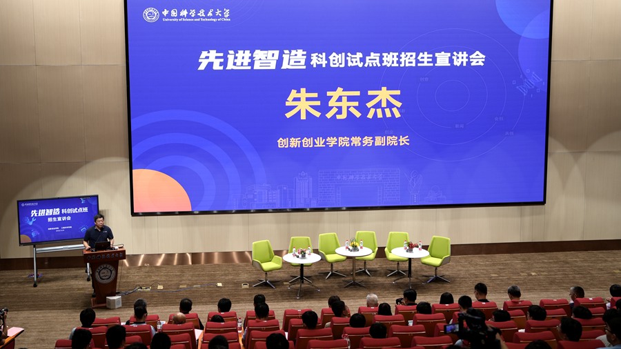 宣讲会上,创新创业学院常务副院长朱东杰代表活动主办单位致辞。首期“先进智造”科创试点班联合班主任王昊做了题为“科创青年,无惧内卷”的招生宣讲,对我校学生创新创业与成果转化行动计划、全校创新创业教育体系、“先进智造”科创试点班人才培养模式等做了详细解读和介绍。