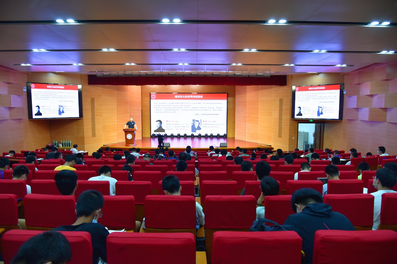 9月28日下午,校党委书记舒歌群教授以《承先辈之志 怀报国之心 做新时代的“六有”大学生》为题,在东区水上报告厅为2022级本科新生讲授第一堂思政课。思政课由马克思主义学院执行院长刘立主持,授课采用线上线下相结合的形式,部分本科新生代表现场听课。