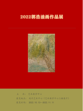 艺术教学中心主办本次展览旨在推动艺术教学工作,促进艺术交流,营造校园艺术文化氛围。“2022郭浩油画艺术展”于10月13日开展至11月11日闭展,欢迎广大师生前来参观。