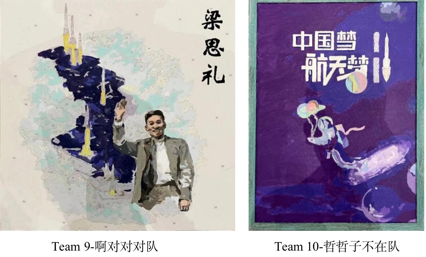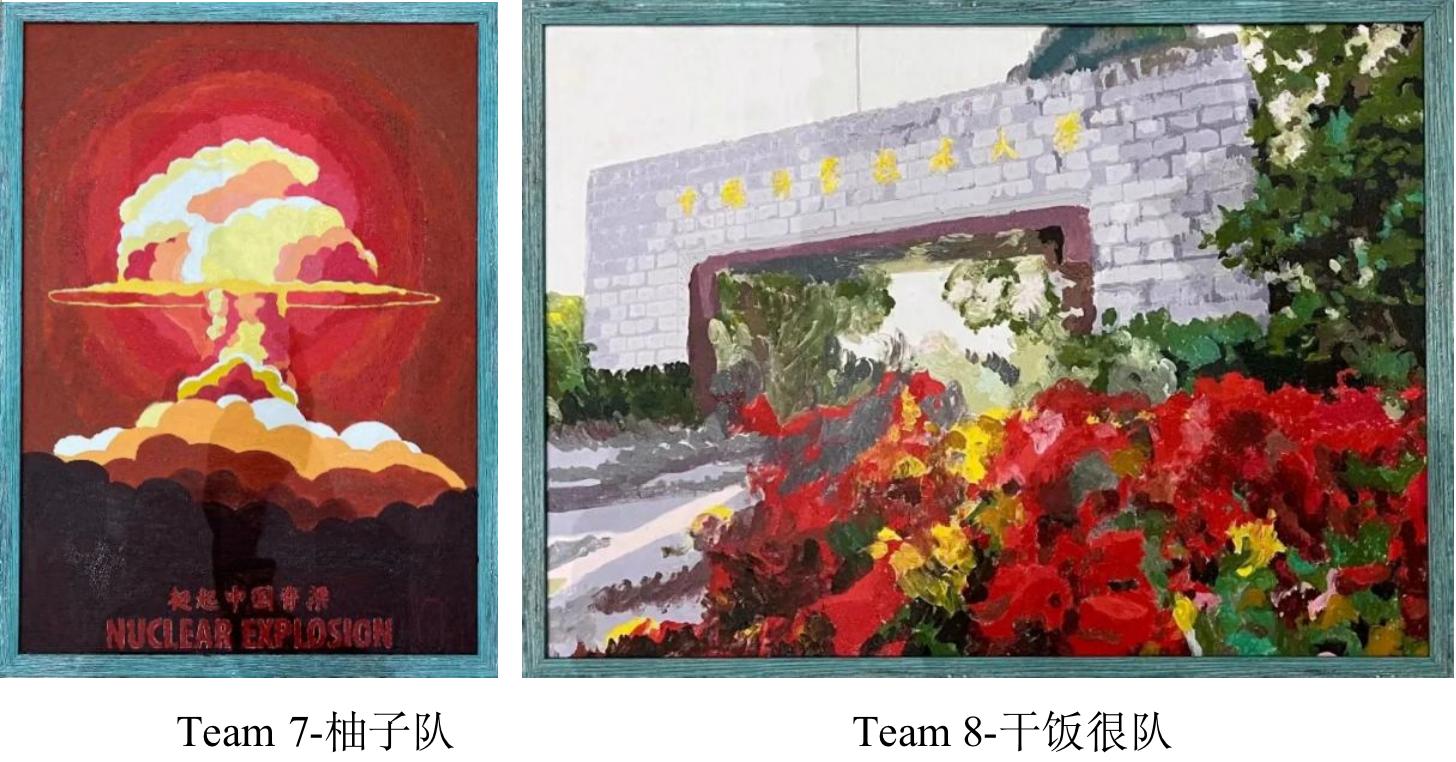 同学们大多2-3人为一队,在选择了画作后便“各显神通”,运用排笔和油彩描绘出一幅幅风格不一的作品。在他们的笔下,有繁华簇拥着的科大校门,有和蔼可亲的老一辈科学家们,还有当年惊天动地的蘑菇云和今日漫漫征途的中国航天梦。