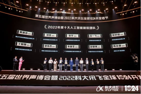 11月18日上午,以“AI向新·数智万物”为主题的第五届世界声博会暨2022科大讯飞全球1024开发者节在合肥开幕,省委常委、合肥市委书记虞爱华发表了主题演讲。会上举行了“2022世界声博会十大人工智能新锐团队”颁奖仪式,省委常委、副省长张红文,中国科学技术大学党委书记舒歌群共同出席,为十大获奖团队颁奖。中国科学技术大学鸿雁队凭借在科大讯飞AI开发者大赛多个赛道中的突出表现,再次获得“十大人工智能新锐团队”荣誉称号,成为会议历史上两度获得该荣誉的唯一团队。