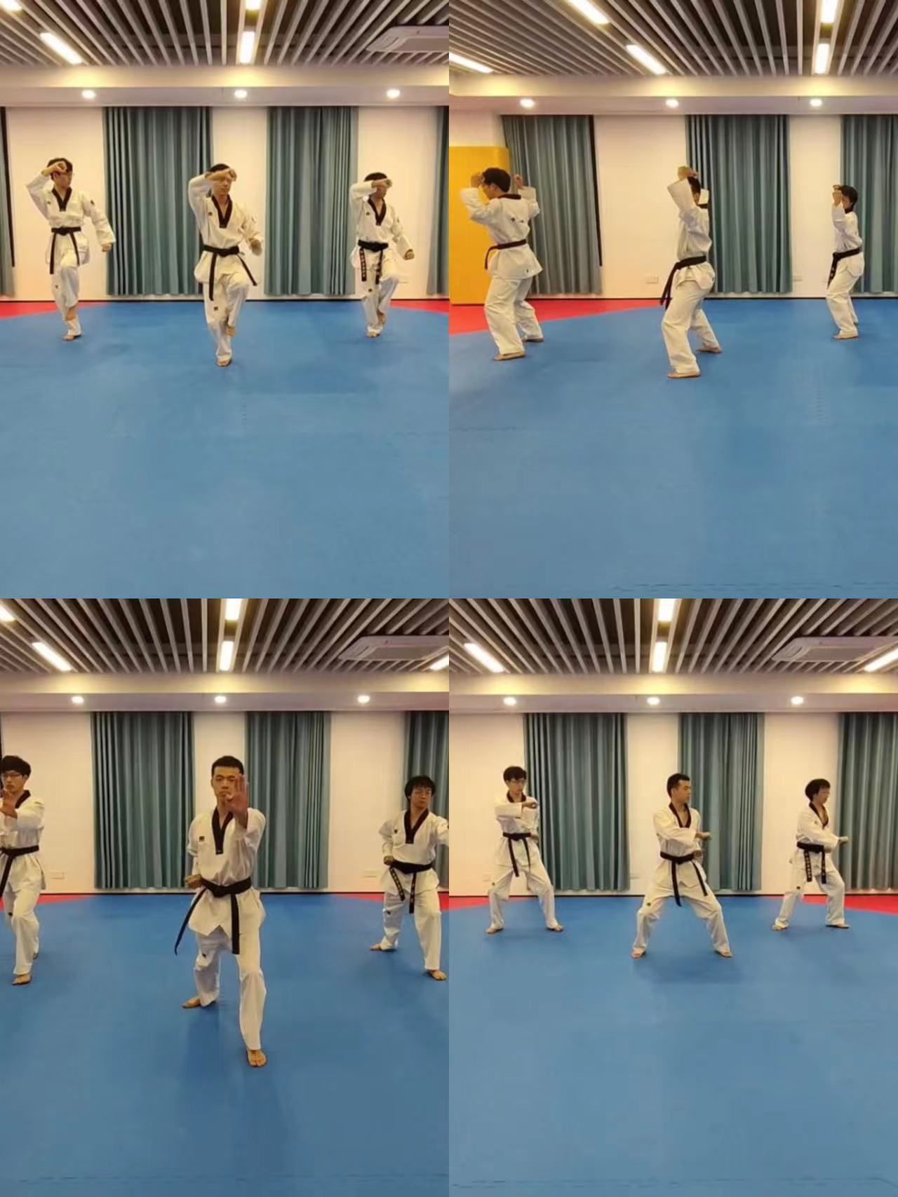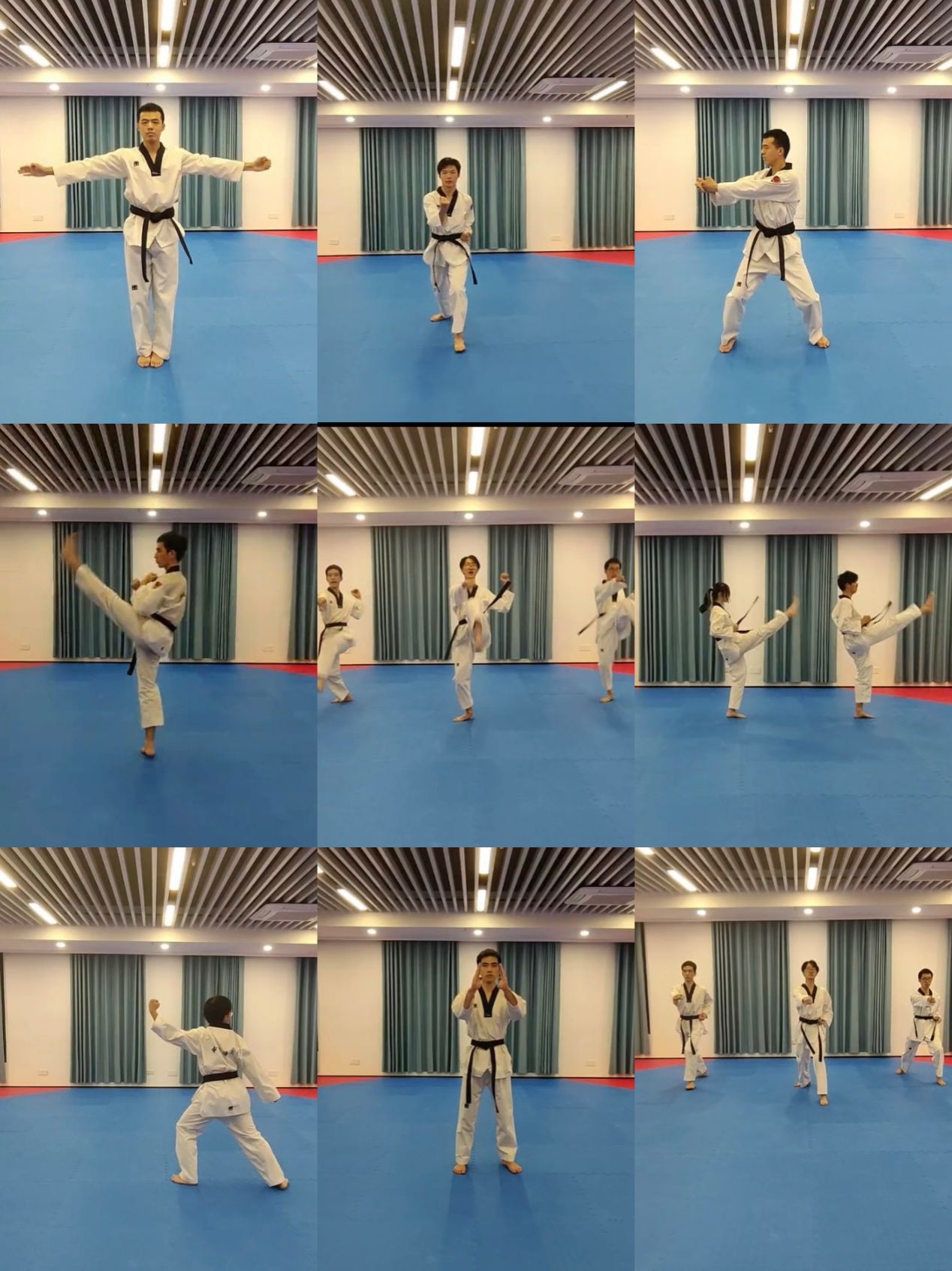 团体品势对参赛者的要求尤为严格。任何一个人在一个微小的动作上出错,便会影响整体的得分。在一遍一遍的录制中,唐竹笑、魏宇凡、朱家国三位同学锲而不舍地打磨动作,最终达到了默契神会的境界。他们完美诠释了跆拳道品势金刚光明伟岸、至大至刚的精神,在众多参赛者中脱颖而出,获得第2名。