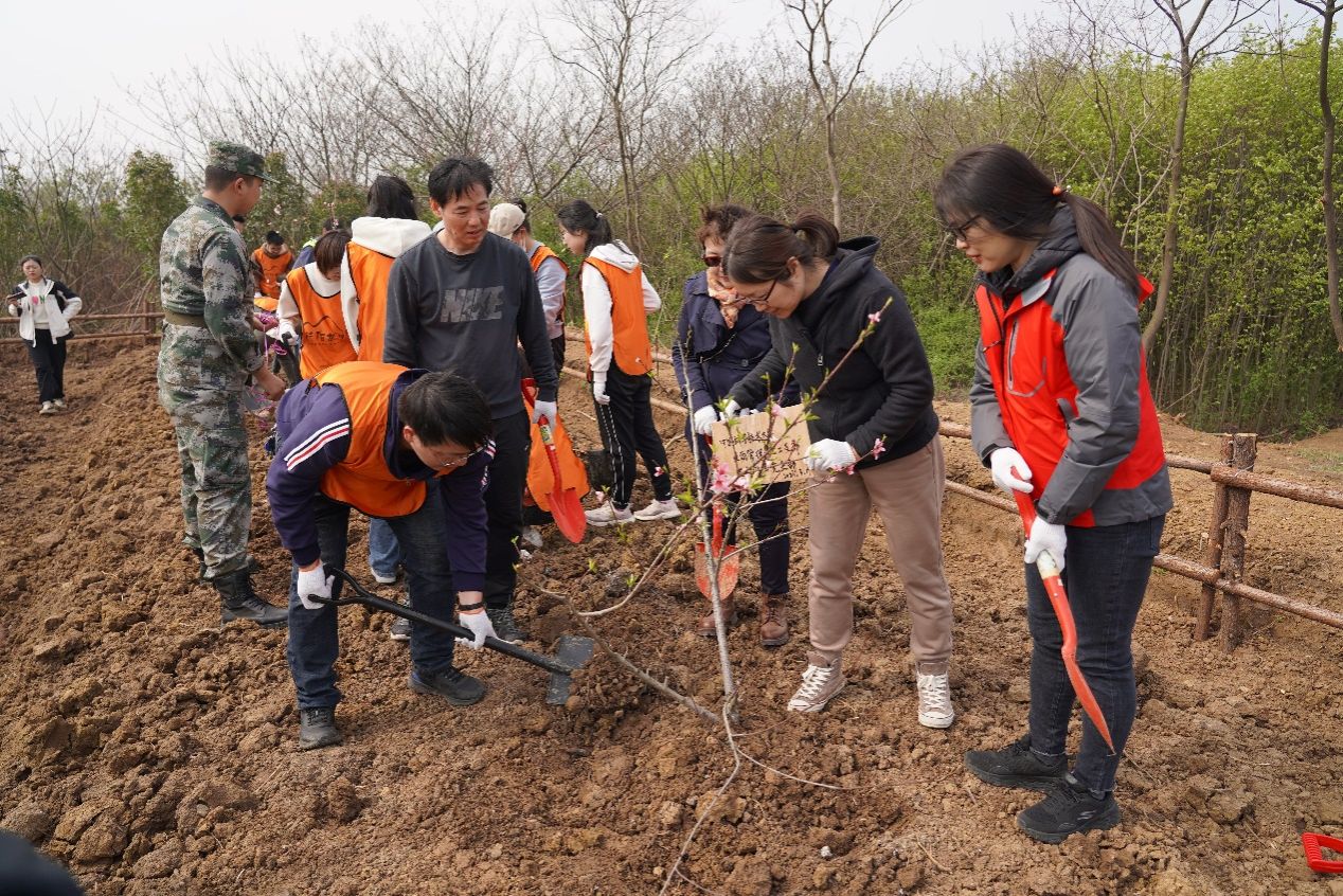 参加活动的全体师生响应“履行植树义务 共建美丽中国”的号召,来到阡陌故里,在工作人员的指导下,种下一棵棵桃树,盼望它们来年长成一片春意。老师与同学们齐心协力、分工明确,在一番辛苦劳作之后,管理学院师生共同在树上挂上寄语牌,写下美好的期许。