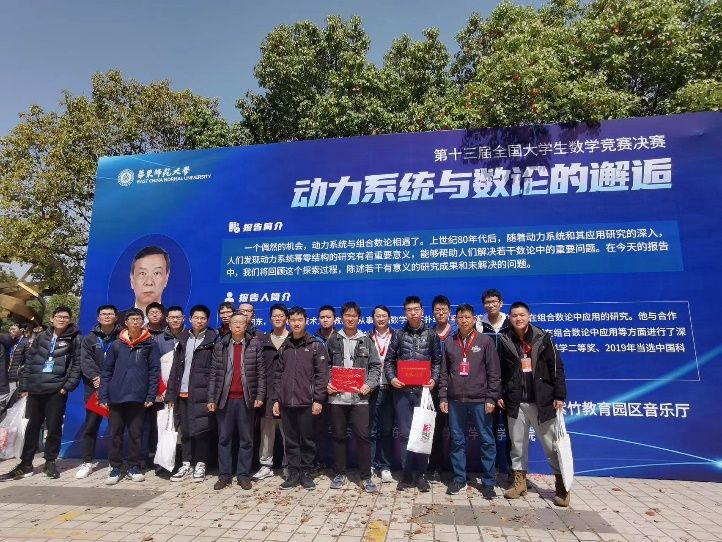 应竞赛组织委员会的邀请,我校叶向东院士出席了本次大赛决赛的颁奖典礼,并作题为《动力系统与数论的邂逅》科普报告。叶向东院士与我校全体参赛队员和教练团队代表合影留念,对他们取得的成绩表示了肯定与鼓励。