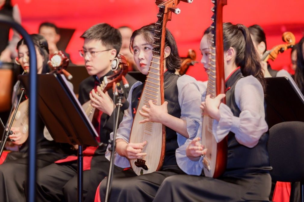 此次担纲演出的是中国科学技术大学学生民族乐团。乐团成立于2002年,全部由中国科大学生组成,曾多次获得校五星级社团称号。截至目前,民乐团已经成功举办了20余场大型音乐会。此次音乐会是民乐团首次在合肥大剧院演出,民乐团运用了多种演绎方式,风格灵动,或柔情舒缓、或荡气回肠,节奏轻重相叠、急缓有序,与现场舞台视效相得益彰,展示了较高的艺术水平与修养,赢得现场观众的阵阵掌声。同时,演出也充分展示了中国科大学子昂扬的精神面貌和青春风采,体现了学校在以美育人、以文化人,提高学生审美和人文素养方面的教学成果。
