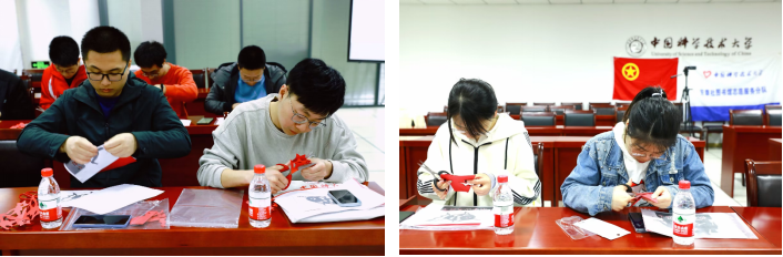 鲍老师提前为本次讲座准备好剪刀和红纸,现场手把手进行教学,讲授了窗花、狼牙山五壮士图等素材的剪纸手法,在场师生积极参与,动手实践,大家都完成了十分精美的剪纸作品。讲座上,鲍老师还与大家分享以红色文化为主题创作的其他剪纸作品。