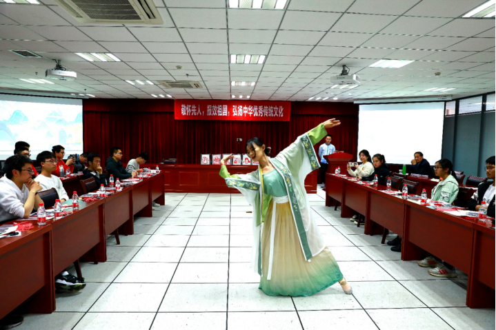 活动最后,校学生舞蹈团赵建雯同学带来的国风舞蹈《青山远黛》,舞者舞姿灵动,明眸望向远方,柔情且坚定,用舞蹈语言演绎中华文化之美。