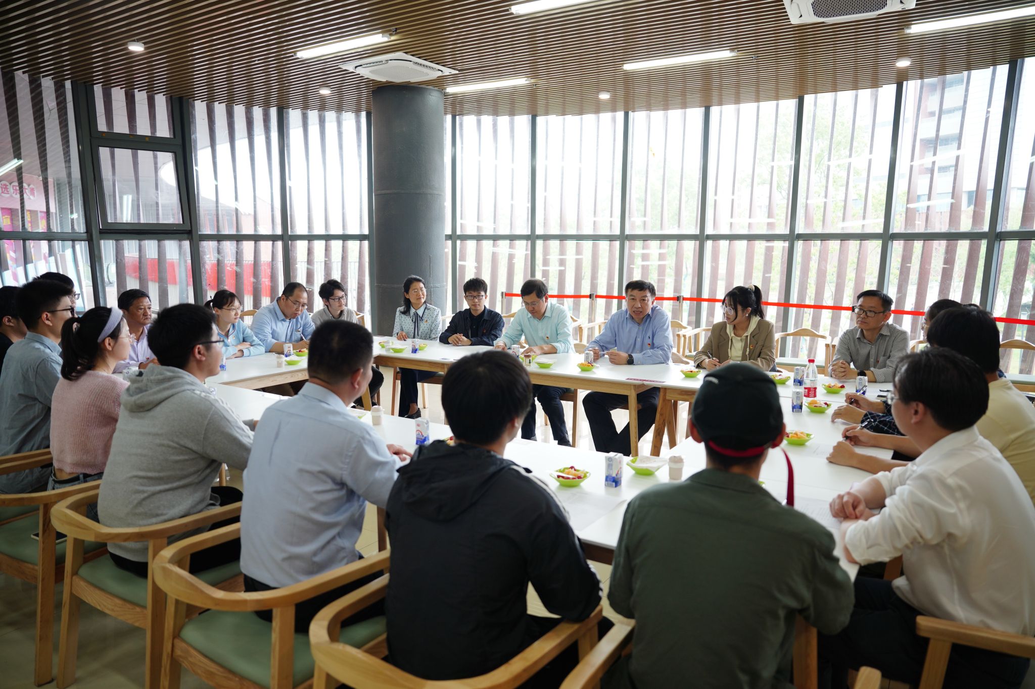 2023年5月4日,五四青年节到来之际,校党委书记舒歌群赴高新园区走访慰问学生代表并开展调研。校党委副书记邓建松,学生工作部(处)、研究生院、保卫与校园管理处、图书馆、饮食服务集团、团委、高新园区管办等单位负责人陪同走访调研,高新园区学生代表参与交流讨论。