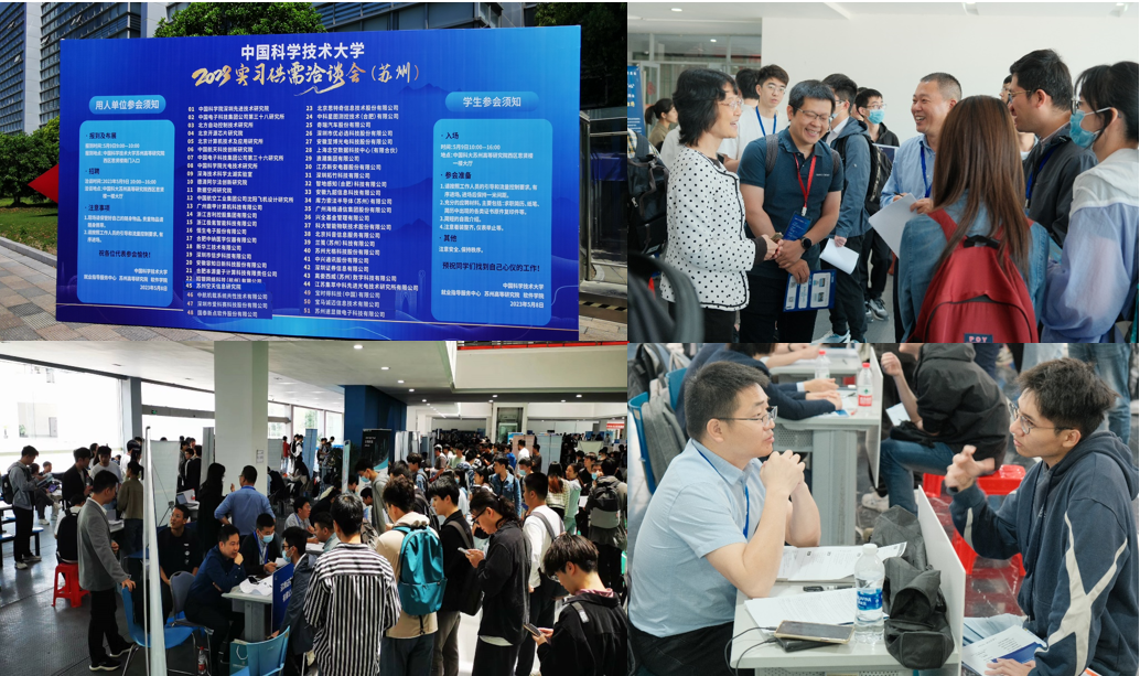 作为今年“实习招聘周”的重要内容之一,5月9日,在中国科大苏州高等研究院思贤楼举办了 “中国科大2023年实习供需洽谈会(信息类专场)”。本次活动由校就业办、苏州高等研究院、软件学院共同主办,50余家用人单位应邀参加。