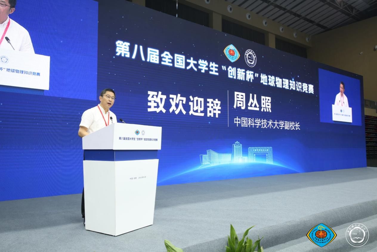 周丛照教授代表本次竞赛的承办单位之一中国科学技术大学对于与会嘉宾和参寒师生的到来表示热烈欢迎。他指出,“创新杯”全国大学生地球物理知识竞赛不仅促进了各高校间的相互交流,也为学生们提供了一个展示、实践、创新和沟通的舞台,有助于激发学生们的创新思维,锻炼学生们的综合素质,提高学生运用地球物理专业知识的能力,同时也推动了地球物理专业人才培养和教育教学的改革,为学生们能够学习新知识,勇于创新,营造出了一种积极向上的氛围。