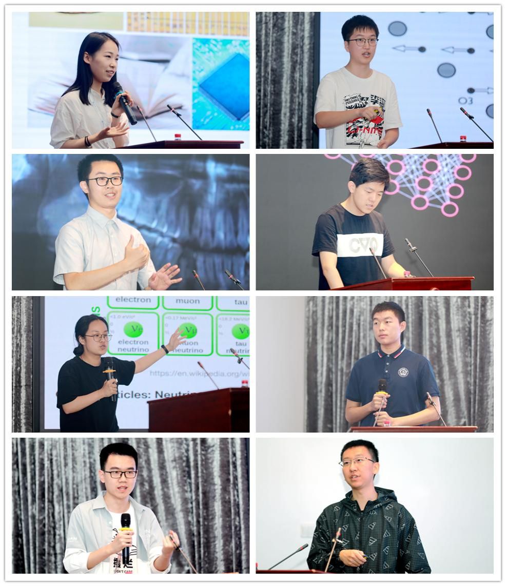 来自2019级及2020级的陈宝骥、关浩森、胡德远、王超樊、张毅杰、张立帆、焦子钰、潘帅唯、陈俞茜、刘博、刘丰铨、张肖煜、孙帅、朱彤、王卓辉、林书睿16位同学根据自己的专业领域进行了精彩的口头报告,介绍了各自在凝聚态物理、量子信息、天文学、粒子物理、理论物理等领域的最新研究进展。口头报告或展示了精密的实验设计,或运用了巧妙的算法技巧,或分析了创新的思想理论,体现着他们的勤奋刻苦科学精神和丰富活跃的创新思维,为低年级的同学们树立了榜样。期间,同学们和老师们通过提问与报告同学进行交流。