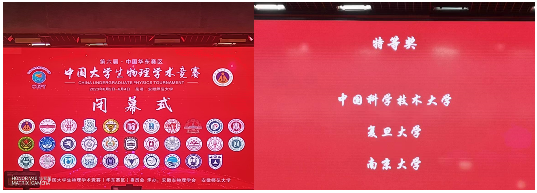2023年6月2日至4日,第六届中国大学生物理学术竞赛华东区赛在安徽师范大学成功举行。来自华东地区32所高校的33支队伍近400名师生参加了此次竞赛。经过四轮紧张激烈的比赛,我校代表队以总分第一名的成绩荣获特等奖。