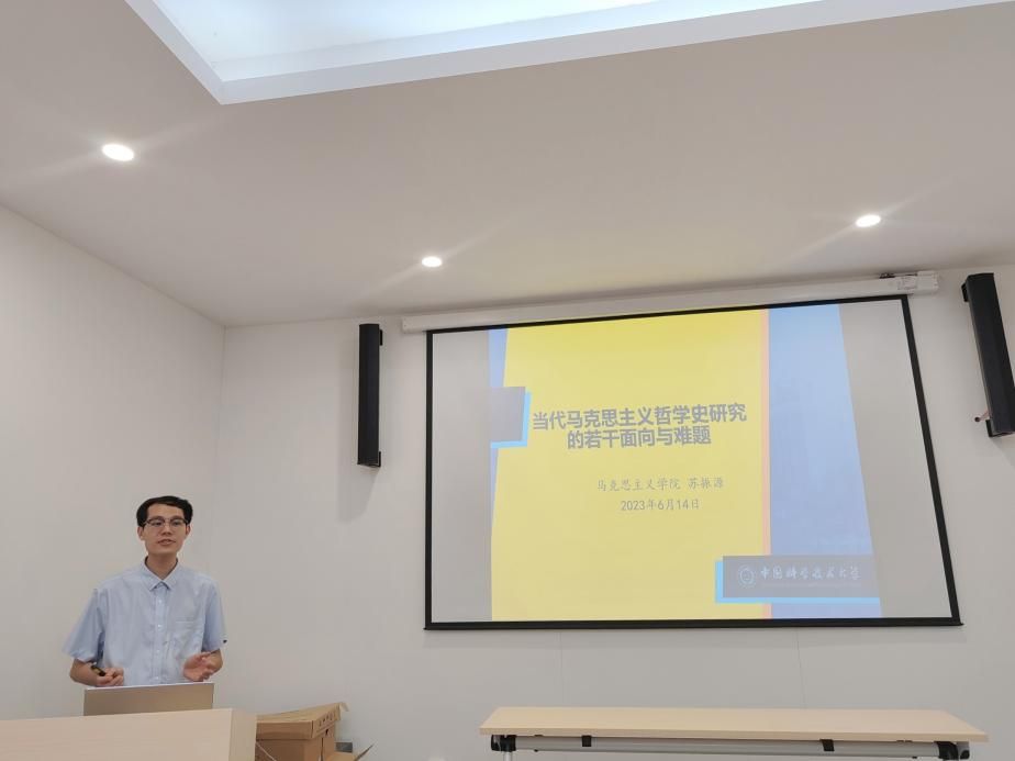 读书会伊始,苏振源老师以“当代马克思主义哲学史研究的若干面向与难题”为题,从学科的诞生、时代的脉搏、源头的追溯、文献的耕犁四个方面介绍了本次读书会的专题内容和哲学史研究方法,为同学们进行思考和研讨明确了方向。随后,各组同学代表依次进行读书分享汇报。