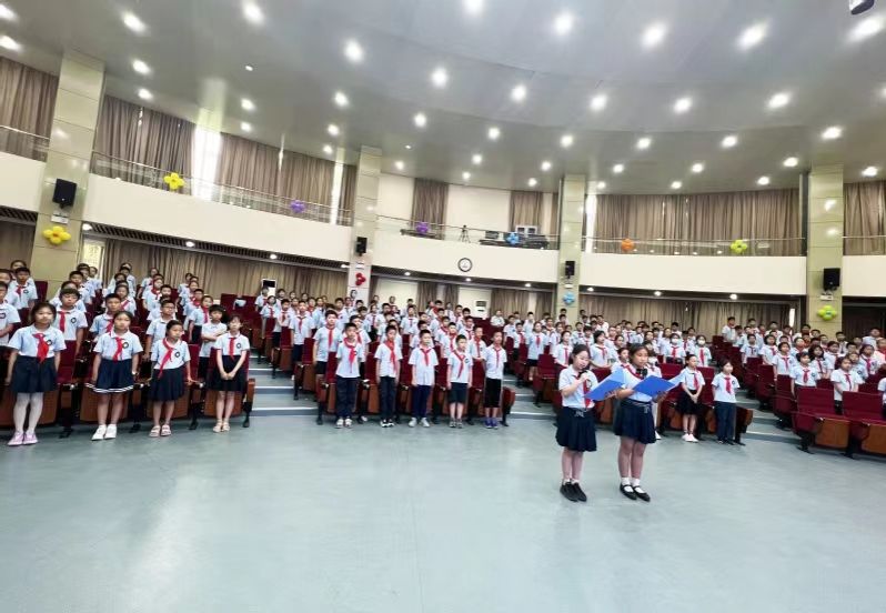 中小学课堂上,正进行着红色歌曲快闪活动,《八月桂花遍地开》响彻会场。该歌曲源自大别山民歌,是根据地人民为庆祝苏维埃政府成立所作,曲调优美、歌词生动。后来,它伴随着红军的足迹传遍了大江南北,成为一首著名的红歌;如今,它又被科大附中的中小学生们再次唱响。来自五(2)班的解逸凡同学唱完红歌后兴奋地说:“这歌真好听,我好喜欢!祝愿我们的祖国花开满园,香飘四季!”