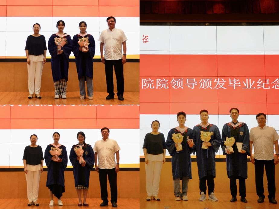 在《永恒的东风》校歌声中,院领导和导师代表共同为毕业生颁发毕业纪念。