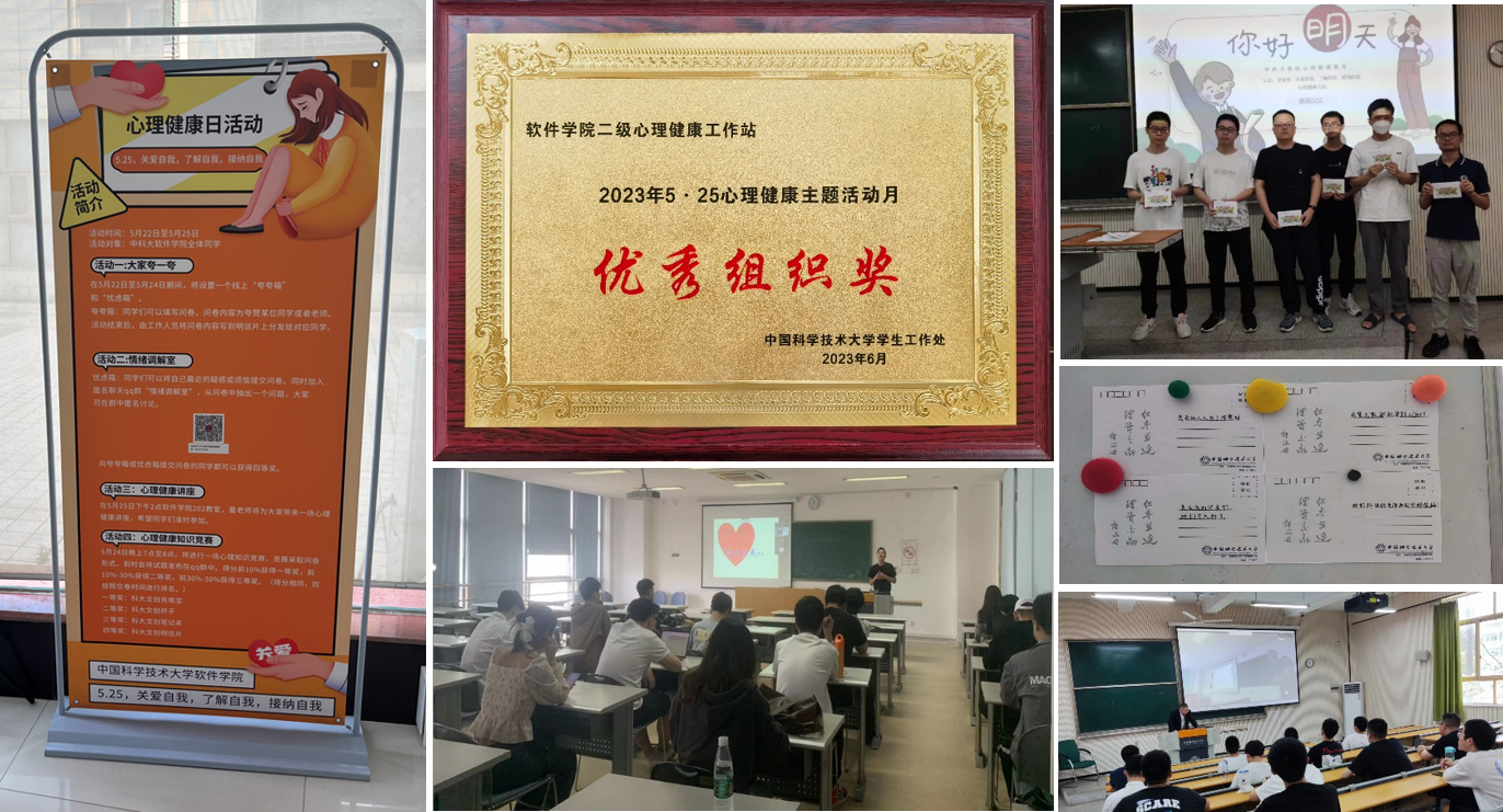 软件学院精心策划、周密组织的主题月系列活动,得到同学们的积极响应,取得良好效果,学院荣获校“2023年5·25心理健康主题活动月”优秀组织奖。在软件学院的大力支持下,在各班级和全体同学的共同努力下,本期心理健康主题活动月活动圆满落幕,学院会持续关注同学们的心理健康,继续做好相关工作。