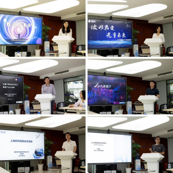 本次交流会邀请了5家企业代表进行宣讲,分别是科大国盾量子技术股份有限公司人力资源负责人顾秀虹、技术专家雍海林,山东国耀量子雷达科技有限公司总经理申屠国樑,九章(济南)量子科技有限公司总经理徐佳敏,国科量子通信网络有限公司总裁助理李明翰,光子盒平台研究总监王素妍。在这些企业中,不乏我校毕业的优秀校友,他们代表公司向在院同学详细介绍了公司的基本情况、业务方向、发展前景和人才需求情况,并详细解答了同学们提出的困惑。