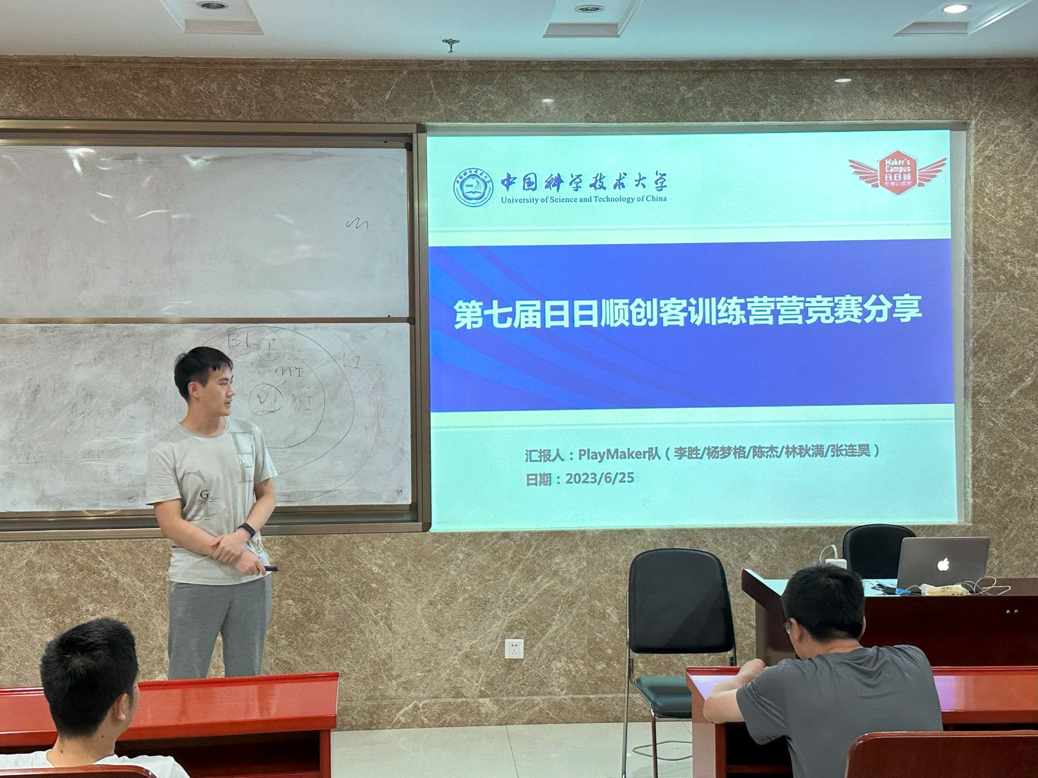 之后,李胜同学给师弟师妹作经验分享以及参赛指导。李胜曾带领小组参加2022年第七届“日日顺创客训练营”并获得金奖。作为整个大赛的亲历者,他针对“天使学”“A轮研”“B轮创”“C轮训”等具体环节分别作介绍,结合自身经历详细介绍比赛流程,并对各个流程中需要注意的事项做了充分说明,给师弟师妹们提供宝贵建议,最后从“答辩热情”“合理分工”“有效沟通”与“落地标准”等方面总结了具体经验,并赠予第八届参赛选手“征途再起,行者远航”八字,激励师弟师妹再创辉煌。往届学员的经验给在座的同学指明了努力的方向,使参赛团队受益匪浅。