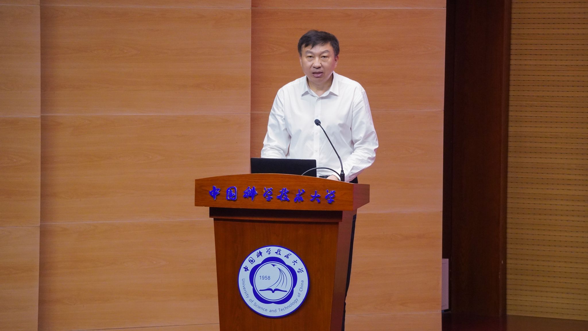 新生家长代表朱钱雨果同学的父亲,中国科大8900级校友、物理学院副教授朱界杰发言。作为校友,他给同学们提了三点建议。第一点是关于人生规划,进入科大学习是人生新阶段的开始,需要同学们明确目标,学习才会有计划、有动力、有成果;第二点是关于学习方面,希望同学们合理安排学习和生活,自主学习,不忘初心,为成为栋梁之才继续努力;第三点是关于身心健康,在学习之余,一定要锻炼好自己的身体。