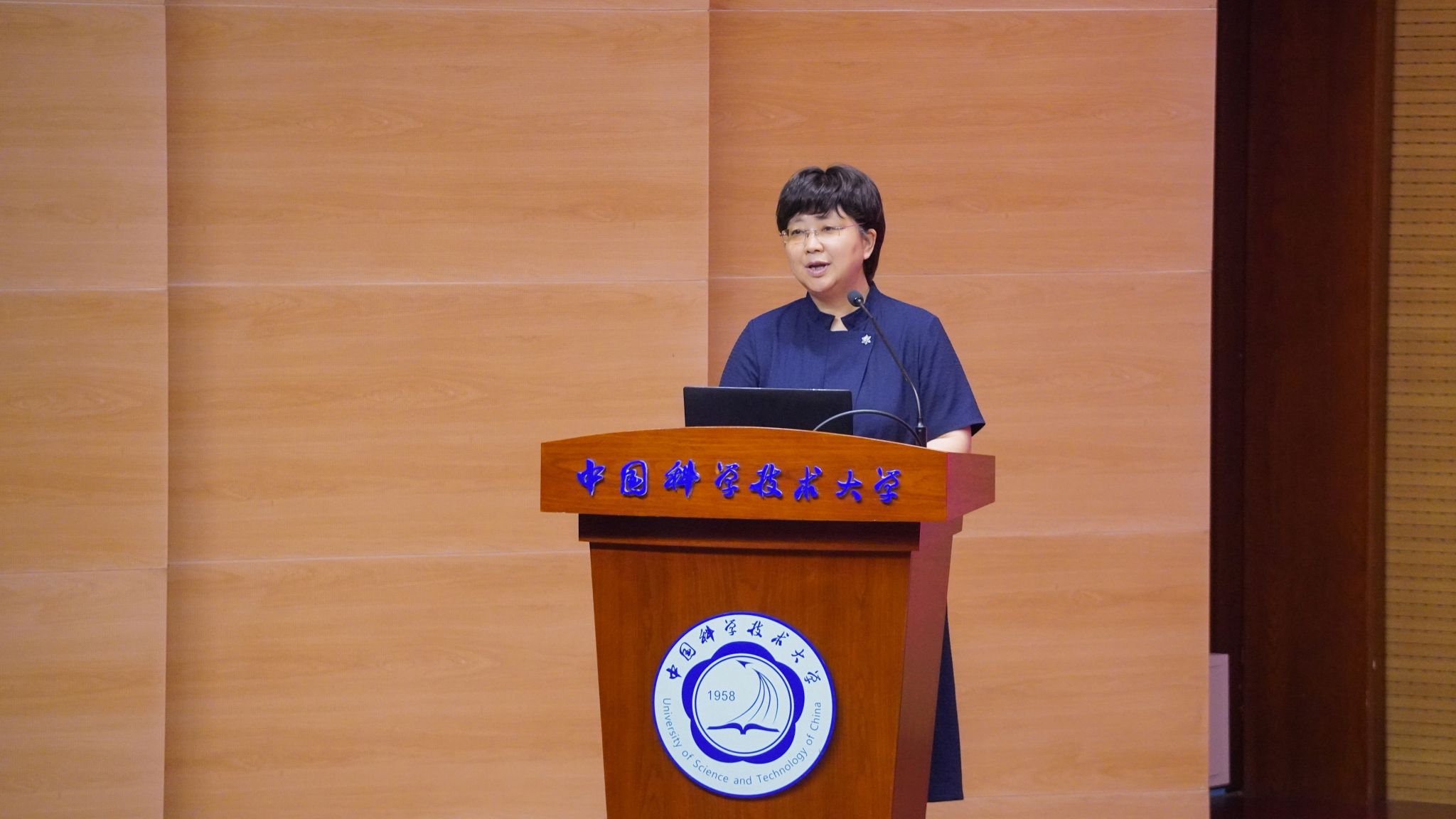 安庆一中党委书记、校长陈文贞作为中学代表发言。陈文贞向中国科大表示了诚挚的感谢,她表示,中国科大是一座了不起的大学,一所红色大学和一所红色中学,共同培育了无数红色人才,为中华民族的伟大复兴贡献着磅礴的教育力量。多年来,一批批优秀的学子从安庆一中走进科大,又从科大走向广阔的舞台,成就辉煌的人生,他们是两校共同的骄傲。她希望选择中国科大的同学们,在新的赛道上奋力前行,跑出青春的速度,创造属于自己的美好人生。