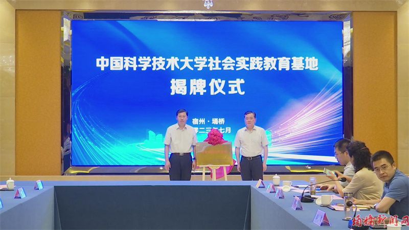 7月26日下午,在皖“双一流”高校社会实践活动基地揭牌暨首届大学生赴宿暑期社会实践活动在宿州丰大国际大酒店举行。宿州市政协副主席、区委书记彭飞出席活动并致辞。校党委副书记、党委宣传部部长邓建松和安徽大学党委常委、副校长黄志祥、合肥工业大学人事处副处长李钦分别作交流发言。团市委书记谢颖锋、市委组织部副部长周广申等出席会议。会上,彭飞和邓建松共同为“中国科学技术大学社会实践教育基地”揭牌,并就校地实践育人体系、人才支撑、服务保障等工作进行深入交流。