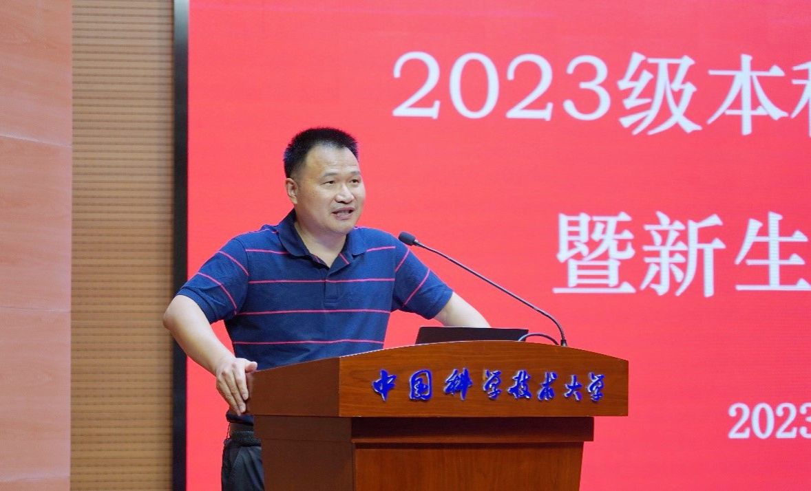 古继宝代表学院致欢迎辞,对2023级本科新生加入管理学院表示热烈的祝贺与欢迎。他指出,中国科大管理学院秉承“红专并进、理实交融”的校训精神,贯彻学校“一流本科教育质量提升计划”行动纲领,努力培养基础扎实、融会贯通、视野开阔、富于创新能力的优秀复合型人才。他鼓励新生们在进入大学之后依然保持学习热情和干劲,努力学习、坚定信心、砥砺奋进,传承科大精神,五育并举全面发展,努力成为德智体美劳全面发展的社会主义建设者和接班人。