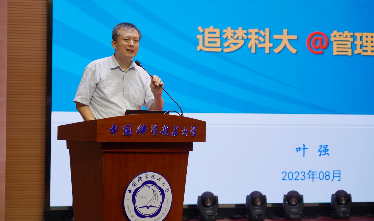 叶强以“追梦科大@管理学院”为题,围绕“追梦卓越的科大、引领时代的管院、管理学院的本科、点燃梦想的年华”四个方面,介绍了管理学院的建设与发展现状。他指出,管理学院着力“创造管理思想与工具,培养管理英才与领袖”,已培育了一大批杰出校友,在政界、学术界、商界等不同领域展现风采。他系统介绍了管理学院特色化本科项目,鼓励同学们利用好管理学院丰富的资源,提升自我,实现全面发展。在报告的最后,叶院长以ChatGPT对时代的影响为切入点,畅谈了数字经济时代的创新,鼓励同学们在知识获取和能力培养的基础上,重视价值塑造,在科技创新日新月异的新时代里,勇敢追梦。