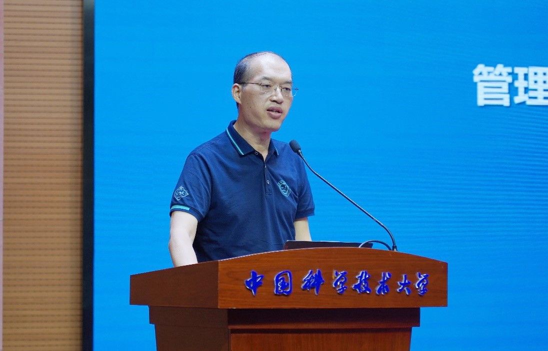 张伟平作“管理学院本科生培养”专题报告。他首先从学院人才培养理念、本科专业概况、课程模块、个性化培养、教学管联动等方面对学院本科培养模式进行了详细解读,并介绍了教学的相关管理规定。最后,他就在科大的学习建议给出了具体的指导,希望同学们充分认识自己、做好规划,能够自主学习、注重效率,调整提升学习策略,锻炼自己的综合能力。