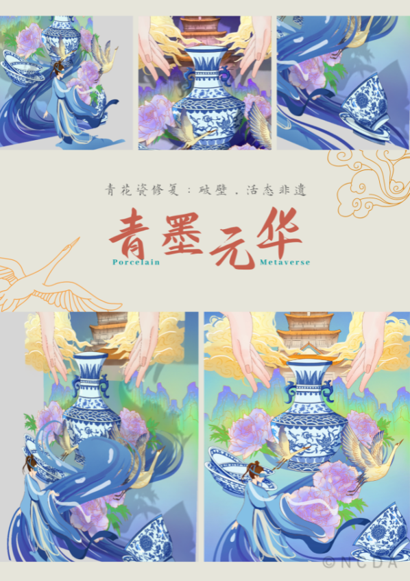 省赛一等奖作品:元宇宙+设计组《AR海报——青墨元华》,作者:陈洋,张颖,曹瑞玥