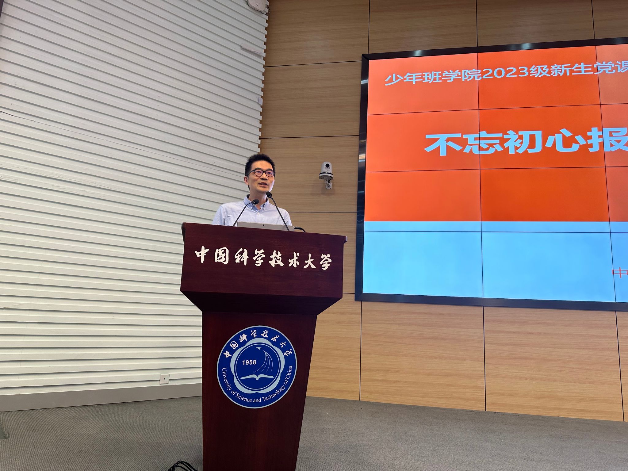开学典礼第二阶段,学院开展新生入学教育。孙广中讲专题党课暨开展院史教育。孙广中介绍了中国科大建校以来的发展历程,以及党和国家对少年班的关怀支持。他指出,少年班学院是创新人才的培养基地、教育改革的试验田,希望同学们争当德智体美劳全面发展的栋梁之才。