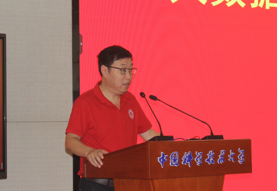 首先,学院党总支书记、执行院长陈恩红发表致辞。陈恩红首先对新同学们的到来表示欢迎,接着他对同学们提出三点期望。一是勉励同学们要树立远大的理想,在中国数字化转型时代,大数据学院学子正处在科学研究的前沿,要立志为国家的科技创新贡献自己的力量;二是尽快适应新阶段的学习和生活,学会与导师、同门相处。他强调,大数据是一门交叉学科,不能仅靠单打独斗,还要学会交流合作,虚心请教;最后,希望大家珍惜在科大的学习生活,全面提高自己的综合素质,开阔眼界,成为祖国的栋梁之才。