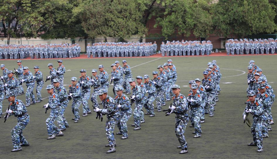 汇报表演彰显训练成果,精彩不断。依次进行军事特色科目汇报的是教官战术表演、男生方阵刺杀操表演、男生方阵军体拳表演、女生方阵匕首操表演,势如霹雳、声若洪钟、英姿飒爽、高潮迭起。坚毅勇敢的目光、整齐干练的动作、“红专并进、理实交融”的呐喊,赢得了在场观众的阵阵掌声,受到了学校领导和承训教官的一致表扬。