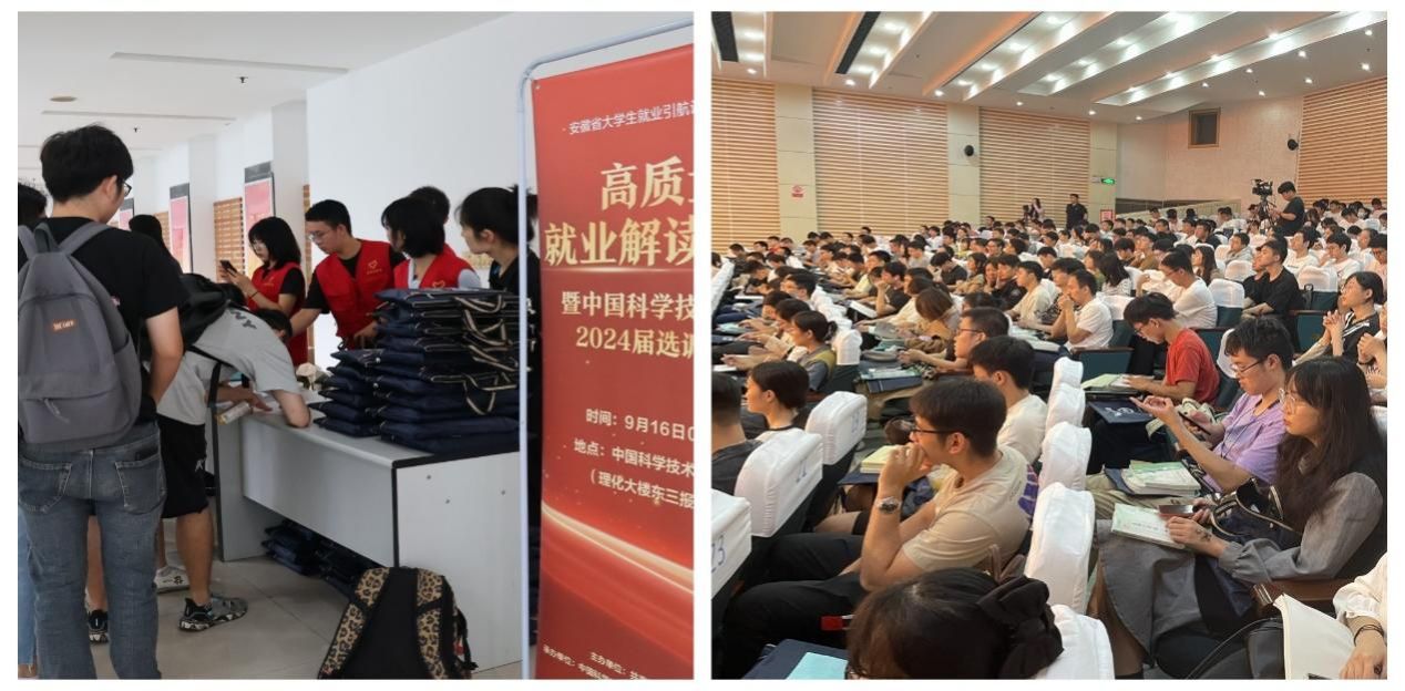 9月16日上午,安徽省大学生就业引航计划示范宣讲——高质量就业解读专场暨中国科学技术大学2024届选调培训在东校区理化大楼东三报告厅隆重举行。团安徽省委学校部部长邹永生,安徽省学联驻会主席徐迎归、恽郑曦,校党委组织部常务副部长申成龙,校团委书记杨晓果,招生就业处选调生项目负责人于萌,部分在肥兄弟高校团委负责同志等出席本次活动,500余名学生参与学习。本次活动由校团委副书记林高华主持。