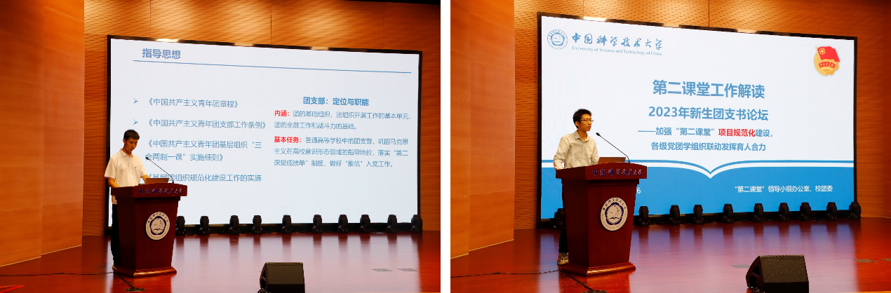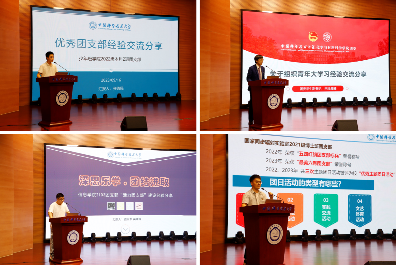 经验交流环节,少年班学院2022级本科2班团支部、化学与材料科学学院团委、信息科学技术学院2021级本科3班团支部和国家同步辐射实验室2021级博士班团支部分别从智慧团建与推优入党、青年大学习、活力团支部建设以及主题团日等方面展开,为新生团支书展现了我校基层团组织通过加强思想政治引领,激励团员青年在中国式现代化建设中挺膺担当的良好精神风貌。