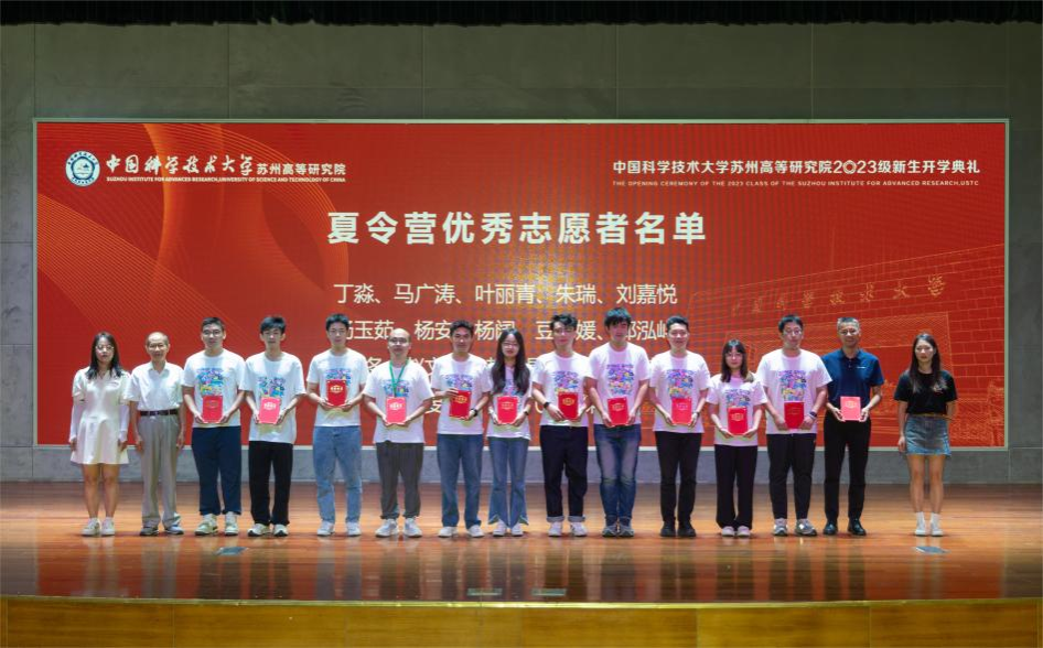 为了鼓励学生志愿服务,培养奉献精神,典礼上举行了2023年夏令营优秀志愿者颁奖仪式,由周少华和杨晴老师为优秀志愿者们颁奖,并合影留念。典礼最后全体师生起立,奏校歌《永恒的东风》。
