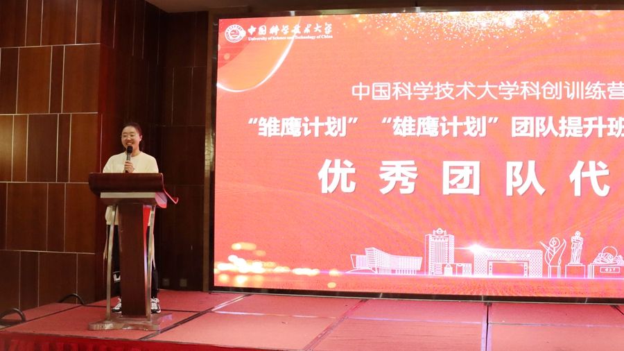 合肥微尺度物质科学国家研究中心2021级博士研究生戚鸣同学代表优秀团队分享了她参与科创训练营的学习收获。她表示,通过参与科创训练营和项目实践,不仅得到了各类双创教育资源的加持,提升了团队的创新意识和创业能力,更重要的是,这段经历在每一位团队成员心中埋下了一颗“敢闯会创”的种子,让同学们看到了更多可能,也拥有了更多勇气面对未知、拥抱变化。