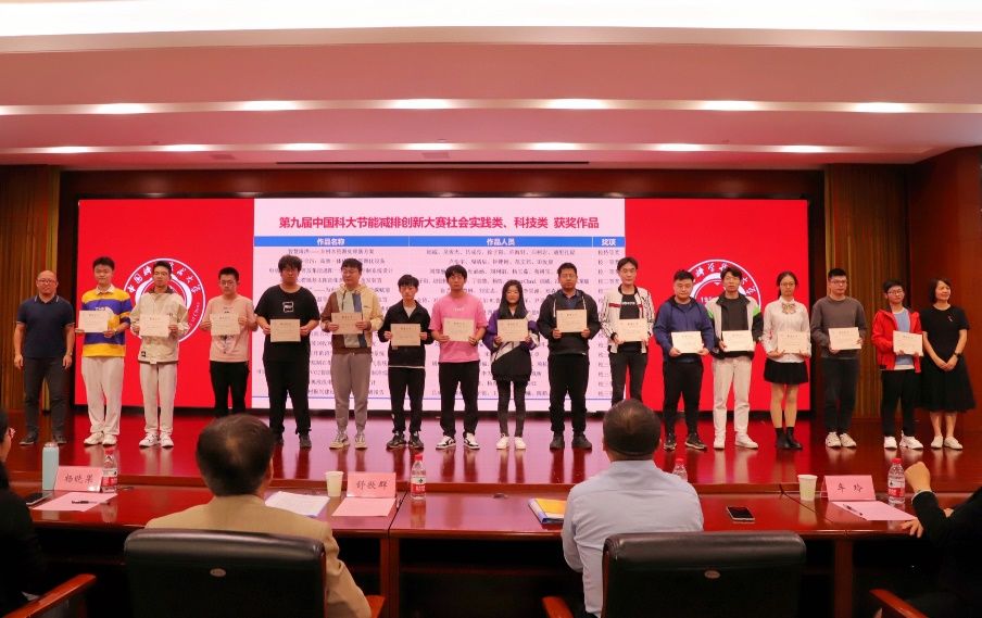 舒歌群还为大赛组委会颁发了优秀组织奖,工程科学学院团委书记王储作为第九届中国科大节能减排创新大赛组委会代表上台领奖。