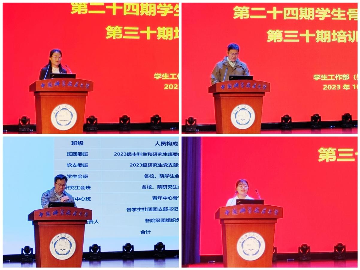 学生工作部(处)副部(处)长刘伟丰宣读《关于举办第二十四期学生骨干培训班暨团校第三十期培训班的通知》,校团委副书记林高华就培训班的工作安排、培训内容和培训形式进行简要介绍,并对培训纪律和成绩考核进行了强调。计算机科学与技术学院2023级本科生李思语作为学生代表发言。她表示,将珍惜这次宝贵的培训机会,努力学习,遵守纪律,争做时代青年的模范,为学校和社会的发展贡献力量。
