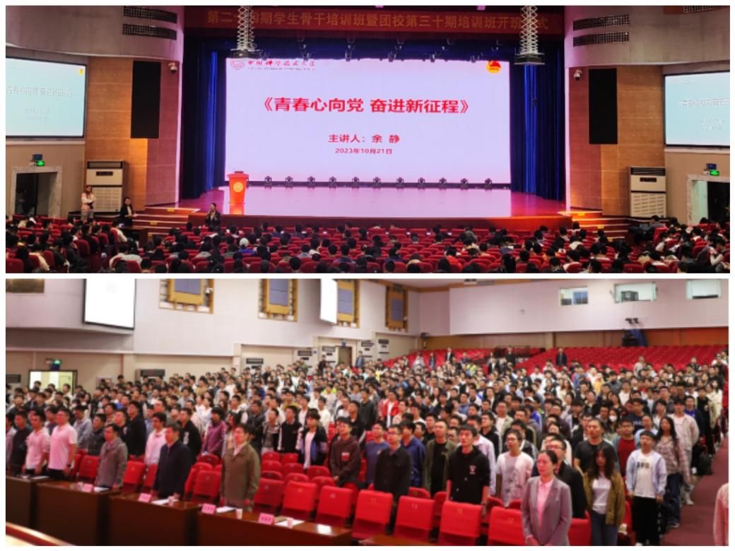 10月21日上午,我校第二十四期学生骨干培训班暨团校第三十期培训班开班仪式在东区大礼堂举行,培训班全体学员1037人参与本次开班仪式。团中央书记处书记(兼职)、金寨县大湾村党总支第一书记、大湾村扶贫工作队队长余静受邀为学员主讲第一堂团课,校党委副书记邓建松出席仪式并讲话,仪式由校团委书记杨晓果主持。