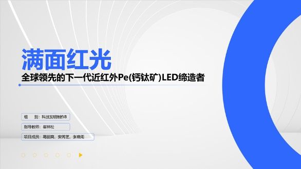 项目名称:满面红光全球领先的下一代近红外Pe(钙钛矿)LED缔造者