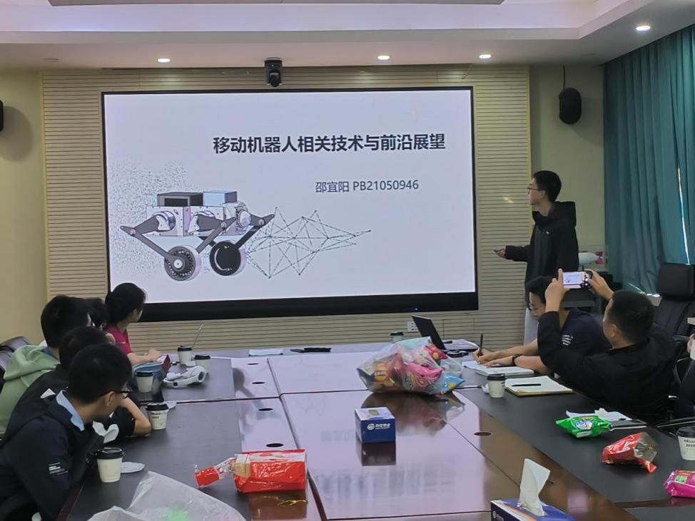 同学们围绕邵宜阳的报告,就双轮移动机器人的技术难点、优势及应用场景,目前工作的创新点,深度学习框架在力学问题中的具体应用前景等问题展开了热烈讨论,并先后分享了近期参与创新活动和科研实践的进展情况。