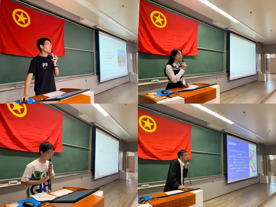 青春路漫漫,各展其风采。两校分别推选了两名学生代表上台作相关内容交流。科大信息学院的田润泽同学分享了暑期带领团队前往安庆怀宁开展“三下乡”社会实践活动的经历与所得,周嘉煊同学则是分享了自己申请入党的心路历程以及大学生活的收获。安徽大学法学院的卢彦冰同学带领大家重温了自己的家乡——小岗村改革开放以来的发展历程,为同学们讲授了相关党史知识;於弘有同学作题为《微光浮尘敬老,传递红色精神》的主题报告,讲述了自己和同学们参加助老公益活动的体悟,分享了当代大学生参与社会实践与服务的经验。精彩的分享引起大家的强烈共鸣,热烈的掌声久久回荡在教室内。