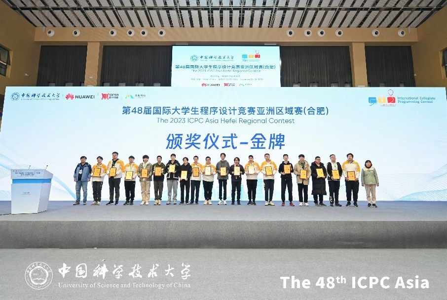 第48届ICPC国际大学生程序设计竞赛亚洲区域赛(合肥)于2023年11月25-26日于中国科学技术大学成功举办。本次大赛由ICPC国际大学生程序设计竞赛亚洲区委员会主办、中国科学技术大学承办,计算机科学与技术学院负责具体组织工作。共有来自清华大学、北京大学等172所高校的344支队伍和3支特邀的非正式队伍参加比赛。本次大赛共产生金奖36项、银奖68项、铜奖104项。