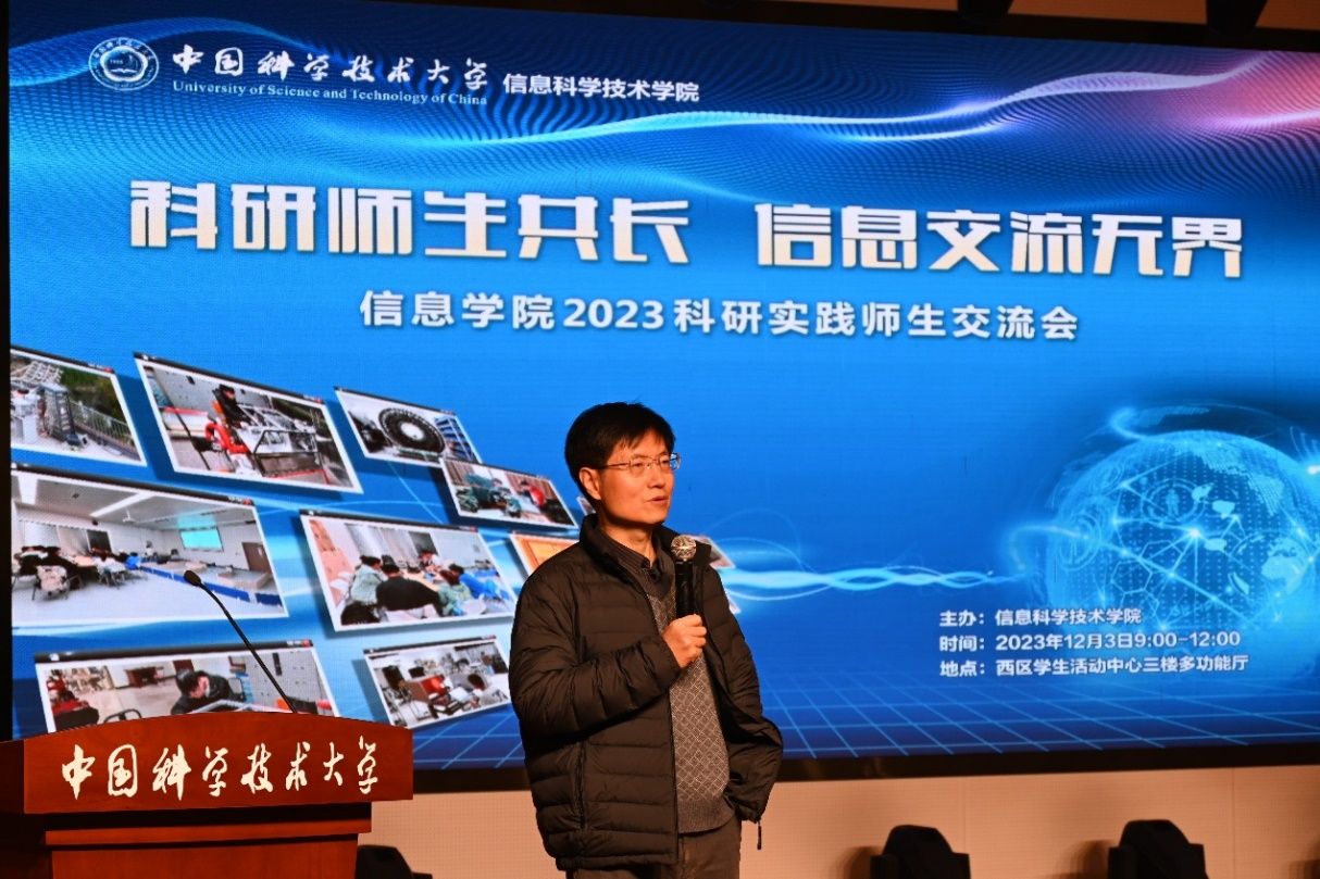 李斌在致辞中首先向各实验室导师代表的到来表示热烈欢迎和衷心感谢,并向在场的学生们介绍了此次活动的目的和意义。他表示,科大有鼓励本科生进实验室的传统,此次交流会,旨在为师生创造一个思维碰撞、知识交锋的机会,促进本科生对实验室科研动态、科研成果、科研方向等的了解,推动本科生早进实验室、早遇伯乐导师,体验科研魅力。