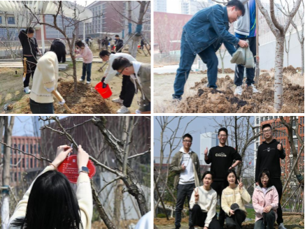 “这是我第一次在园区里过植树节,希望树苗能茁壮成长”,在种植现场一位同学激动地说。本次植树,参与团支部根据前期分组到达指定区域 ,海棠、梨树、紫荆……大家三四人协同,各自分工、密切协作,有的培土、有的浇水,共同栽种下希望的小树。活动现场,同学们还为一株株充满生机的树苗挂上属于自己的铭牌和挂饰。一场辛勤劳动的景象、一幅团结协作的画面、一份美好心愿的寄托,共同成为美好校园建设的一道亮丽风景线。同学们表示,未来将与树苗们共同成长,确保植一片、长一片、绿一片 。