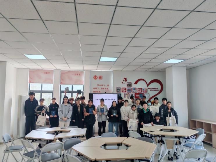 宣讲结束后,双方学生进行交流分享。宣讲团向安徽省特殊教育中专学校学生会和社团成员代表赠送了精美文创纪念品,并合影留念。