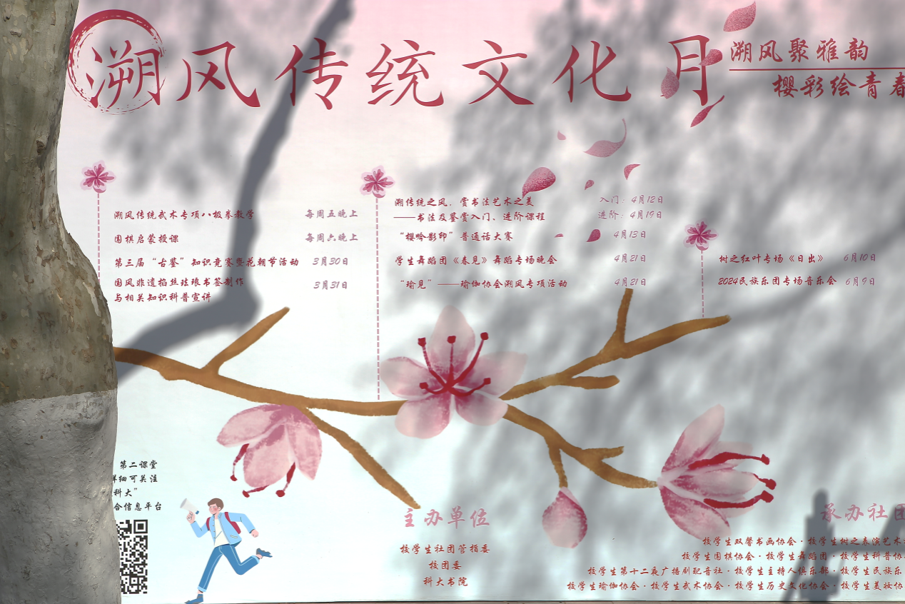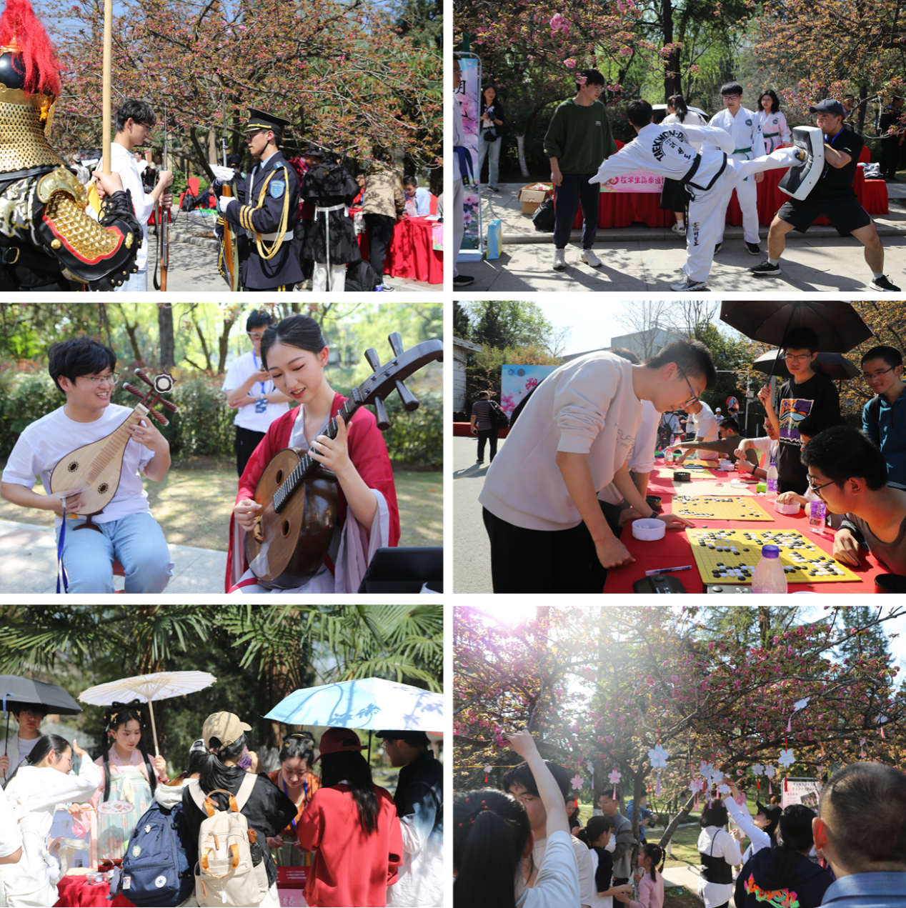 当天,樱花大道热闹非凡,各类学生社团结合自身特色精心准备了可参与、有收获的体验活动,在师生赏樱之时传递了厚重的传统文化。学生民乐团的乐器表演、学生国护队的装备体验、学生围棋协会的一对一比拼、学生美妆协会的古妆教学、学生跆拳道协会的黑带表演等,丰富多彩的活动吸引了广大师生参与,让师生从不同角度近距离欣赏和感受传统文化。