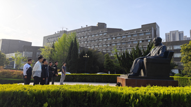 最后,同学们来到夏培肃先生雕塑前,献花,肃立缅怀,鞠躬致敬。夏培肃先生是著名计算机专家和教育家、我国计算机研究的先驱和我国计算机事业的重要奠基人之一、中国科学院计算技术研究所研究员、中国科学院院士。1960年,夏培肃先生设计试制成功中国第一台自行设计的电子计算机——107计算机(科大一号)。从20世纪60年代初期开始,夏培肃先生一直研究如何提高计算机的运算速度,探索实现高性能计算机的技术,并负责研制成功多台高性能计算机。夏先生的一生始终围绕计算机,晚年时对学生最多的叮嘱就是:“我这辈子最大的心愿是搞好中国的计算机事业,我们这代人没搞好,你要搞得比我好。”“以后我们回来建设新中国。”她为表明“中国人有能力、有志气设计和研制自己的计算机”,勇闯科研难关;她一生甘为“人梯”,后人评价说:她为计算机事业培养学生的影响,远远超过研制“107机”。清明时节,计算机学院的同学们缅怀夏先生,也接续着夏先生等一代代中国计算机人的伟业,迎着晨光,奔跑前进。